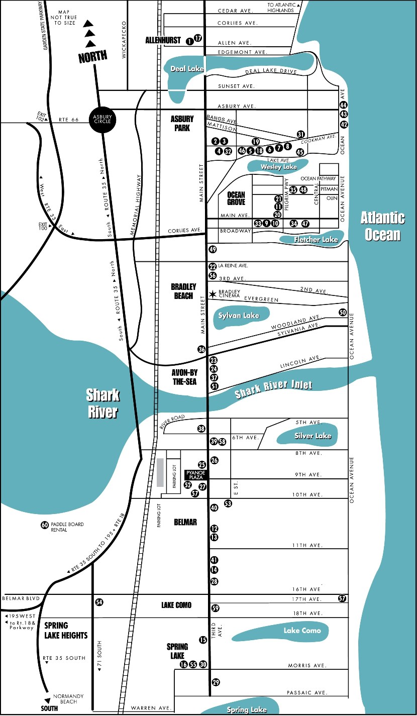 cursor is over the dark circle number. If a Web address is indicated, clicking the mouse will bring up a new browser page for the corresponding business' Web site. Clicking without an indicated Web address, will bring you to the Top-of-Page. Click on the town title to view the businesses covered by jerseysureguidemap.com within that particular town only.